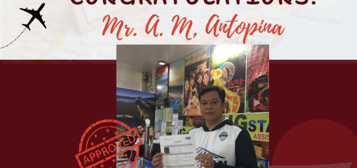 JAPAN: TOURIST VISA GRANTED – MS. M., SEROY “I Would like to thank BIGSTART for helping me process my tourist visa in Japan. Kudos to Miss Aila for always answering my queries and for...